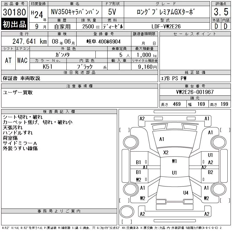 Nissan CARAVAN VAN с аукциона Японии CAA Gifu лот № 30180