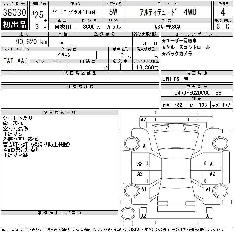 Chrysler JEEP GRAND CHEROKEE с аукциона Японии CAA Tokyo лот № 38030