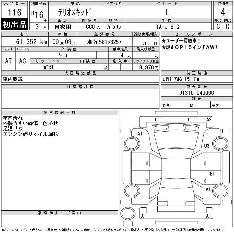 Daihatsu TERIOS KID с аукциона Японии CAA Tokyo лот № 116