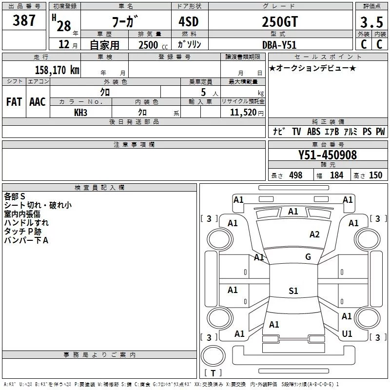 Nissan FUGA с аукциона Японии TAA Kinki лот № 387