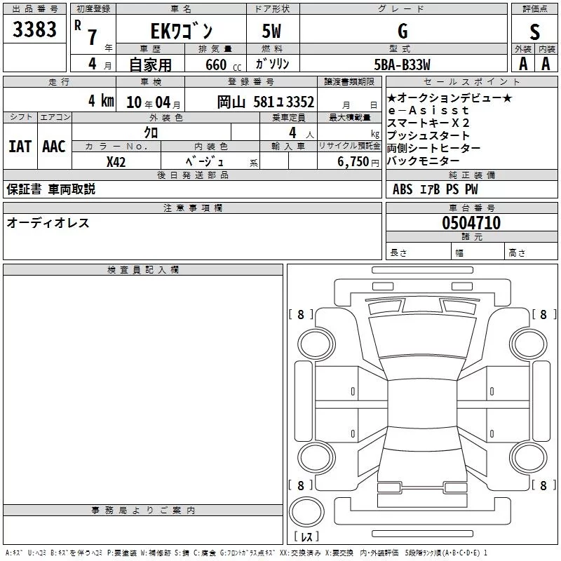 Mitsubishi EK WAGON с аукциона Японии TAA Kinki лот № 3383