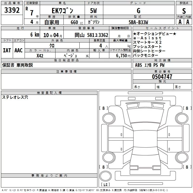 Mitsubishi EK WAGON с аукциона Японии TAA Kinki лот № 3392