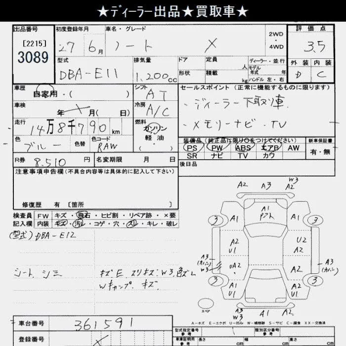 Nissan NOTE с аукциона Японии JU Saitama лот № 3089