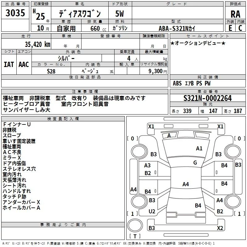 Subaru GOLF ALLTRACK с аукциона Японии TAA Minami Kyushu лот № 3035