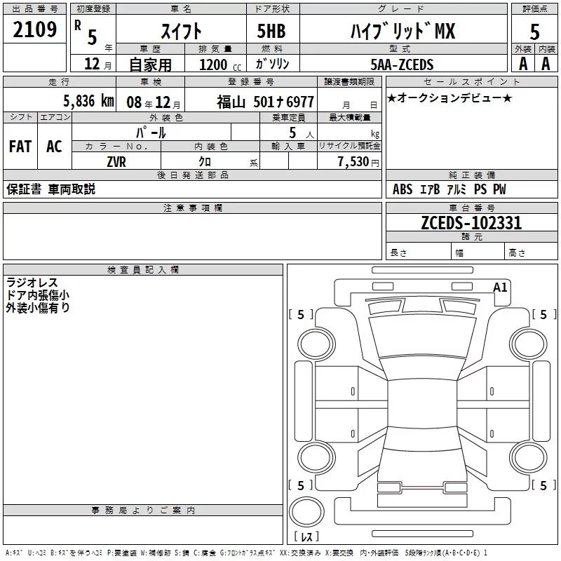 Suzuki SWIFT с аукциона Японии TAA Hiroshima лот № 2109