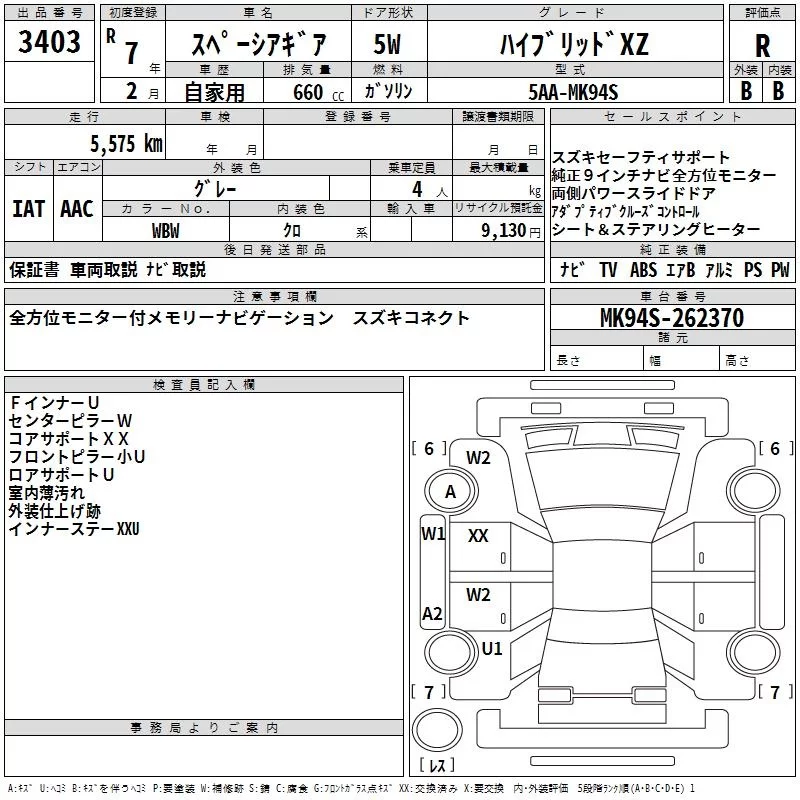 Suzuki SPACIA GEAR с аукциона Японии TAA Kinki лот № 3403