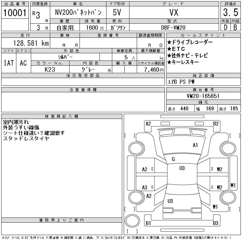 Nissan NV200 с аукциона Японии CAA Gifu лот № 10001