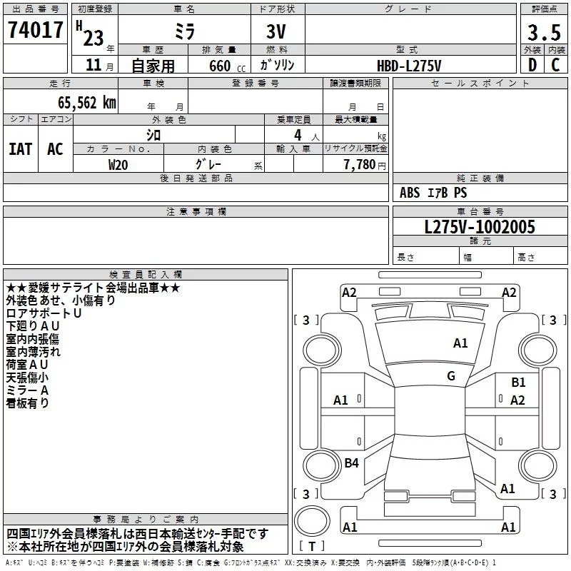 Daihatsu MIRA с аукциона Японии TAA Shikoku лот № 74017