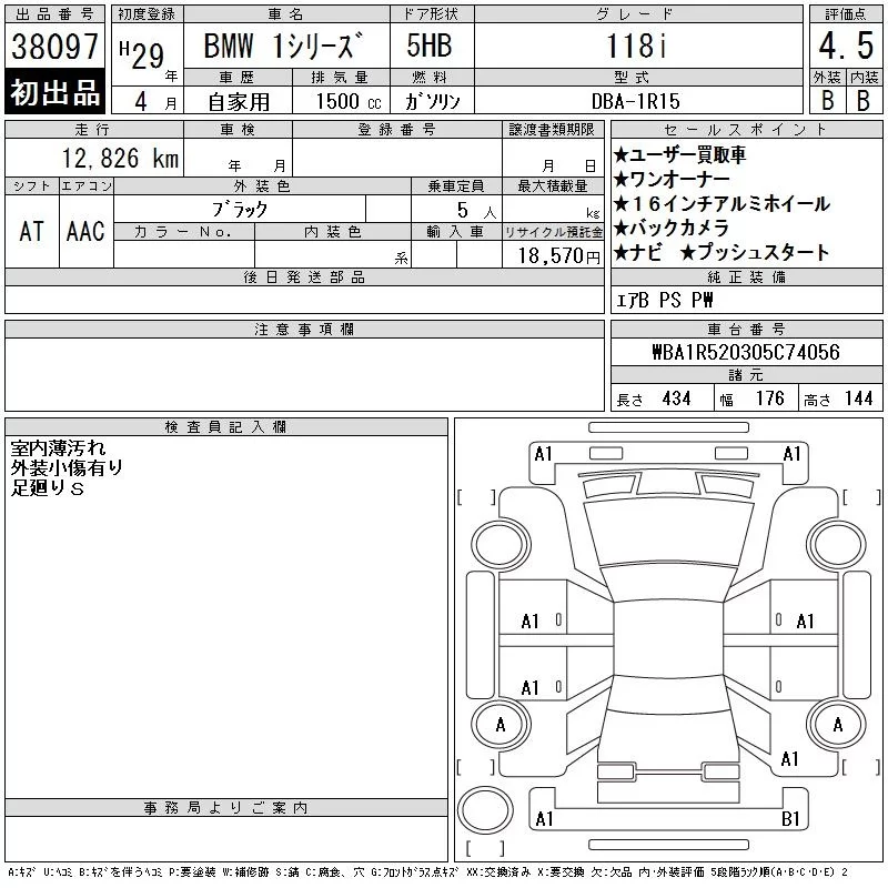 BMW 1-Series с аукциона Японии CAA Tokyo лот № 38097