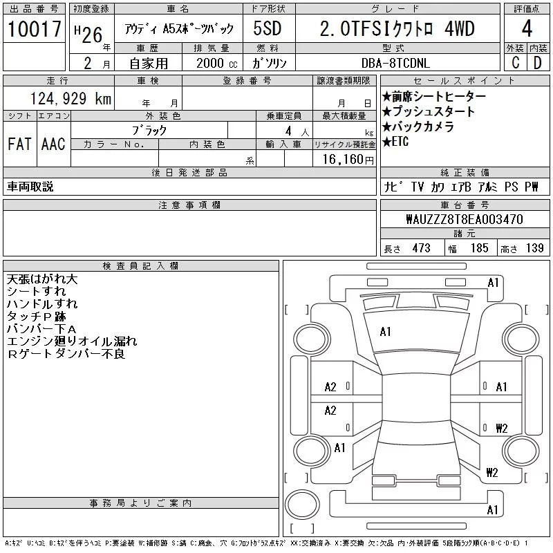 Audi A5 с аукциона Японии CAA Gifu лот № 10017