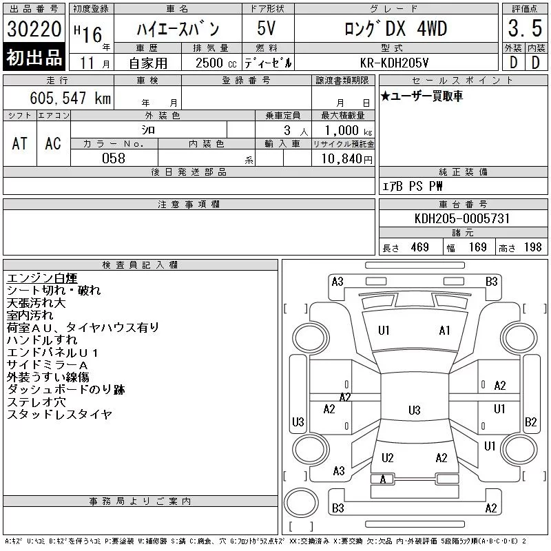 Toyota HIACE VAN с аукциона Японии CAA Tokyo лот № 30220