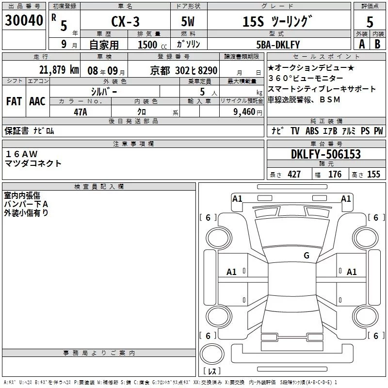 Mazda CX-3 с аукциона Японии TAA Kinki лот № 30040