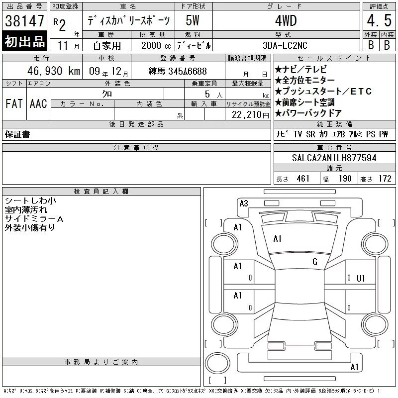 Rover DISCOVERY с аукциона Японии CAA Tokyo лот № 38147