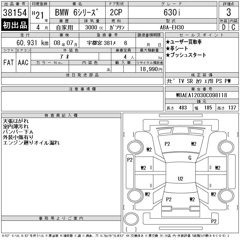 BMW 6-Series с аукциона Японии CAA Tokyo лот № 38154