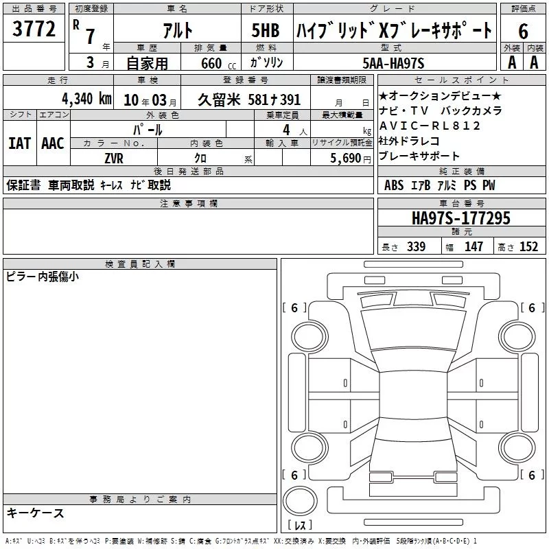 Suzuki ALTO с аукциона Японии TAA Kyushu лот № 3772