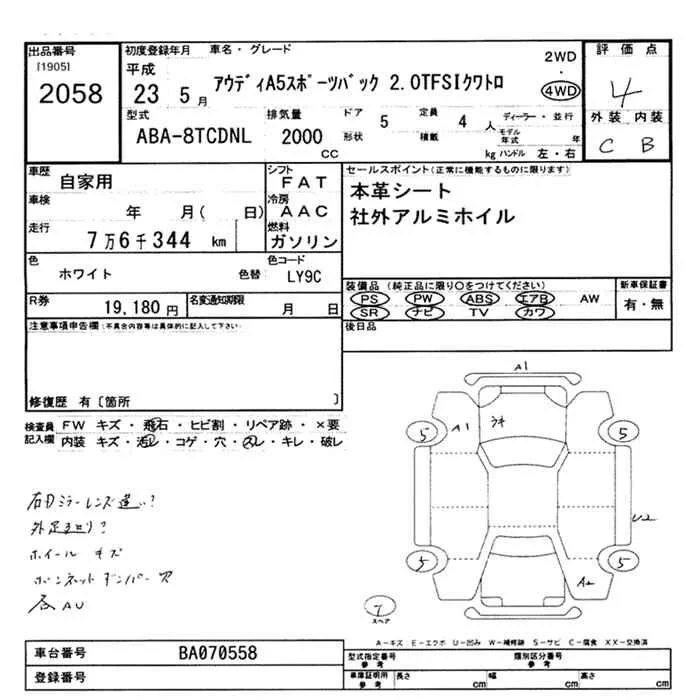 Audi A5 с аукциона Японии JU Mie лот № 2058