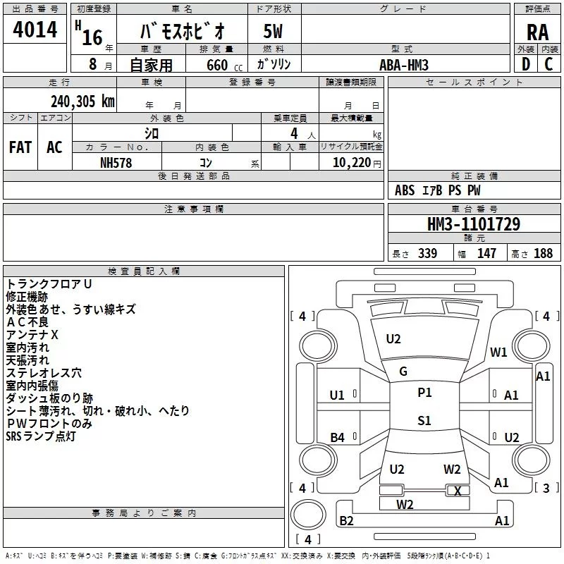 Honda VAMOS с аукциона Японии TAA Shikoku лот № 4014