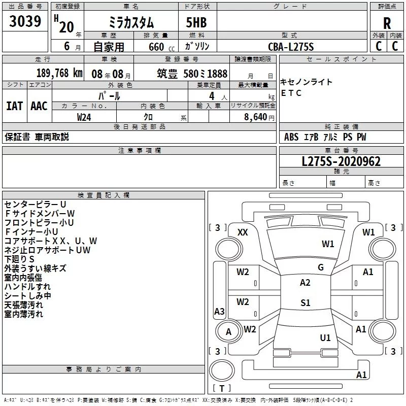 Daihatsu MIRA с аукциона Японии TAA Kyushu лот № 3039