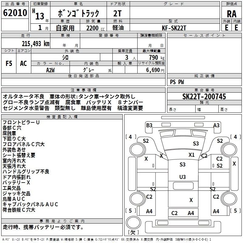 Mazda BONGO с аукциона Японии TAA Minami Kyushu лот № 62010
