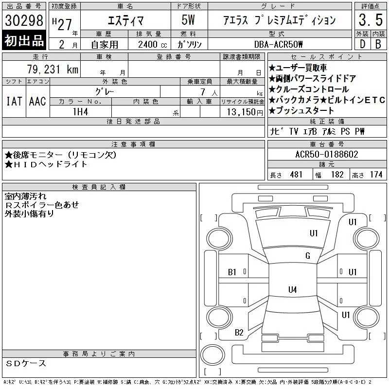 Toyota ESTIMA с аукциона Японии CAA Tokyo лот № 30298