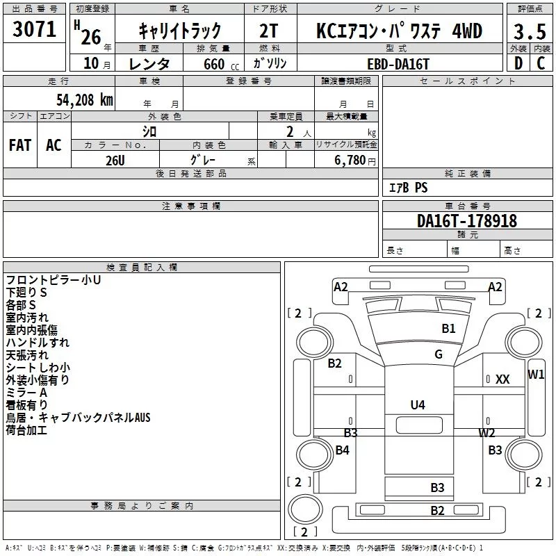 Suzuki CARRY TRUCK с аукциона Японии TAA Kyushu лот № 3071