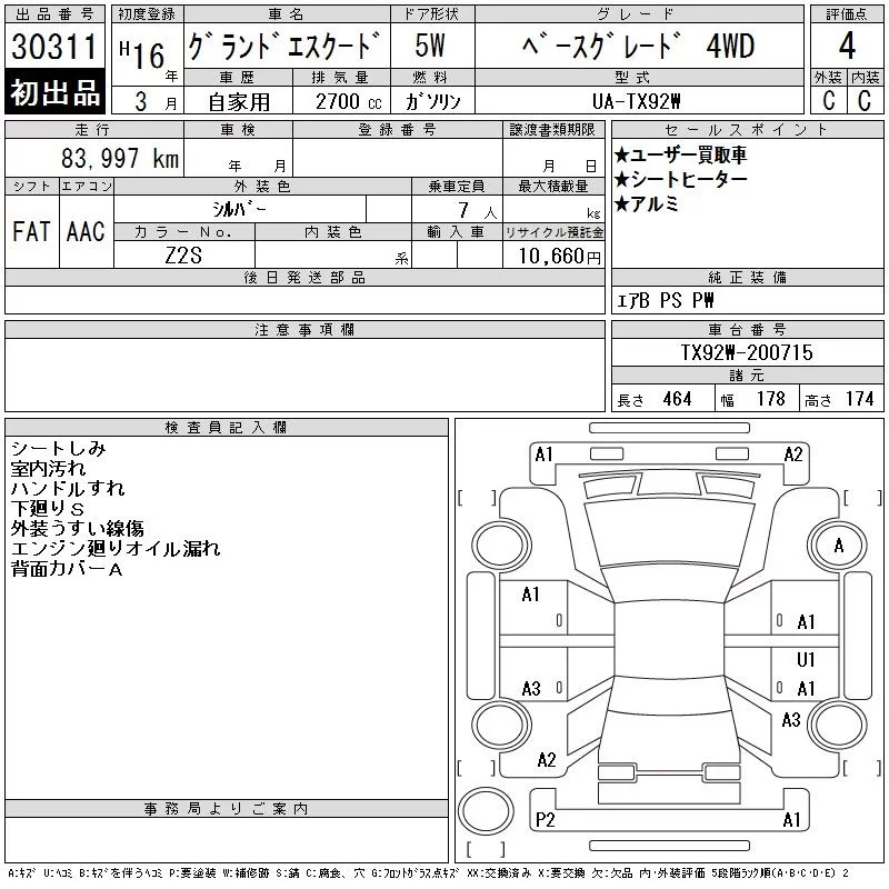 Suzuki GRAND ESCUDO с аукциона Японии CAA Tokyo лот № 30311