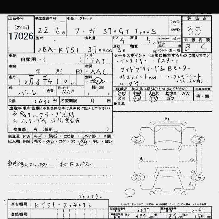 Nissan FUGA с аукциона Японии JU Saitama лот № 17026