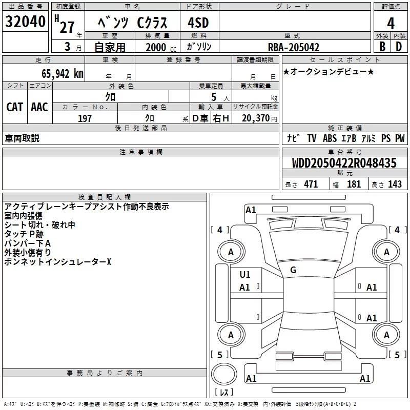 Mercedes-Benz C CLASS с аукциона Японии TAA Kinki лот № 32040