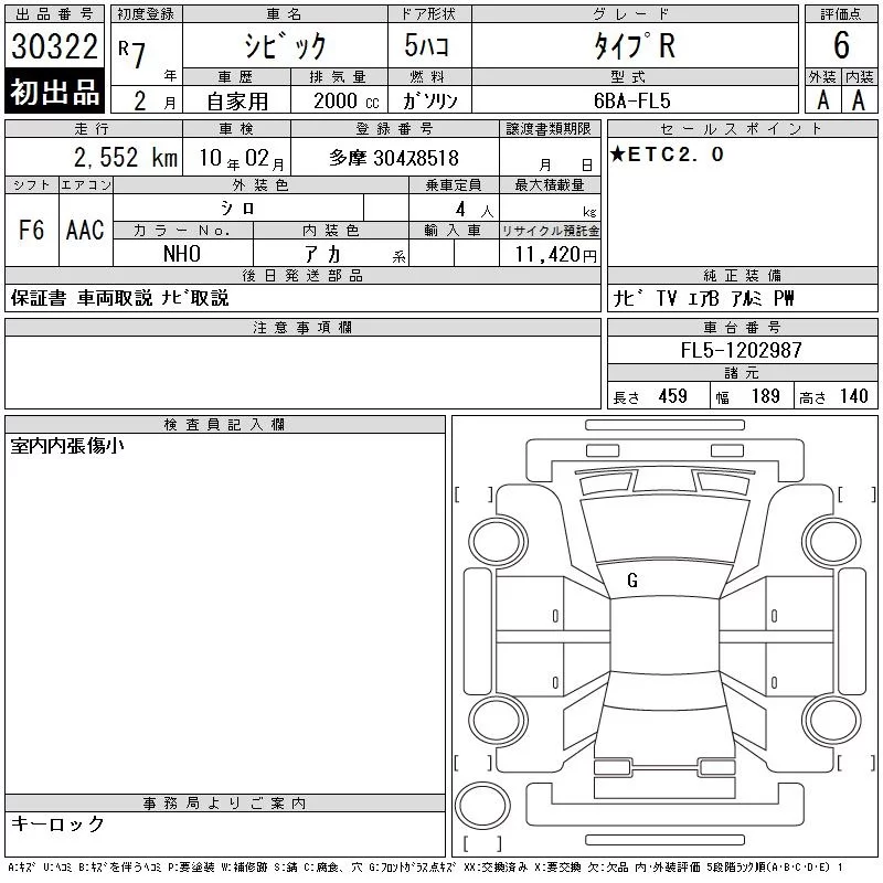 Honda CIVIC с аукциона Японии CAA Tokyo лот № 30322