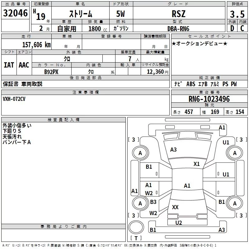 Honda STREAM с аукциона Японии TAA Kinki лот № 32046