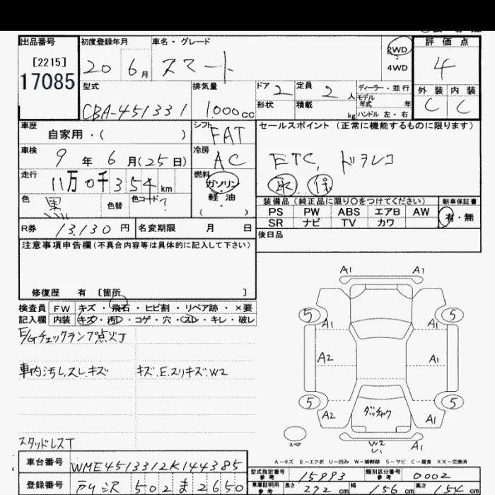 Smart FORTWO с аукциона Японии JU Saitama лот № 17085
