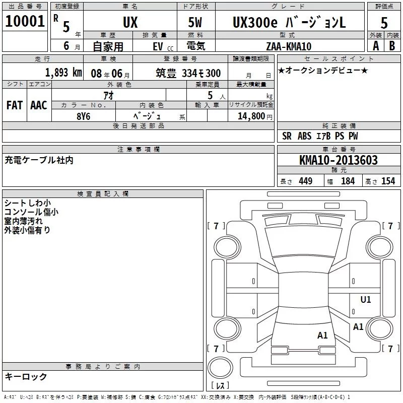 Lexus UX с аукциона Японии TAA Kyushu лот № 10001