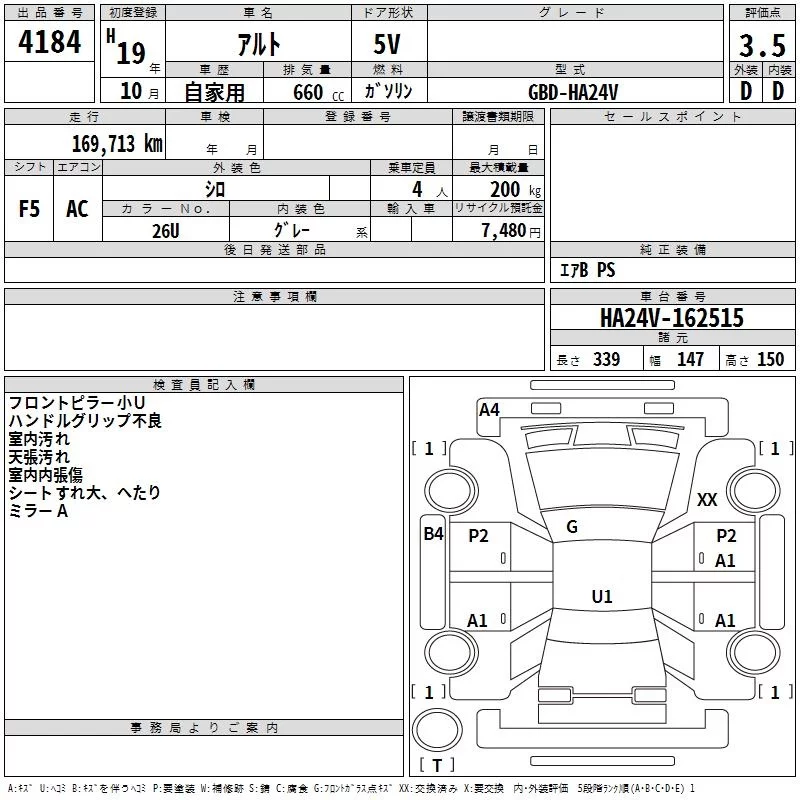 Suzuki ALTO VAN с аукциона Японии TAA Shikoku лот № 4184