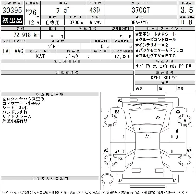Nissan FUGA с аукциона Японии CAA Tokyo лот № 30395