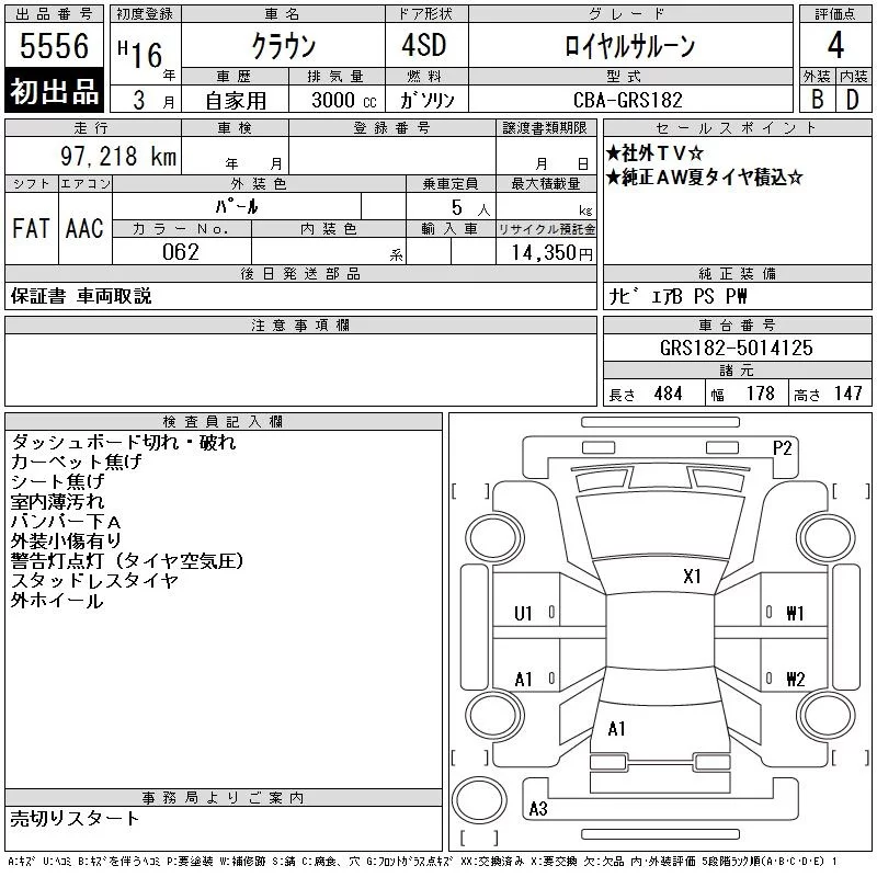 Toyota CROWN с аукциона Японии CAA Tohoku лот № 5556