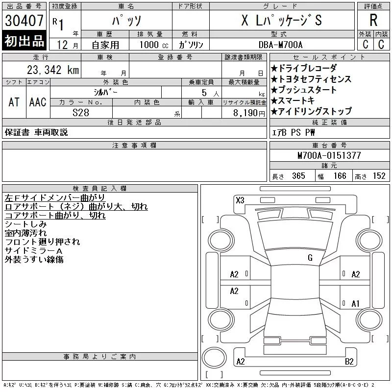 Toyota PASSO с аукциона Японии CAA Tokyo лот № 30407