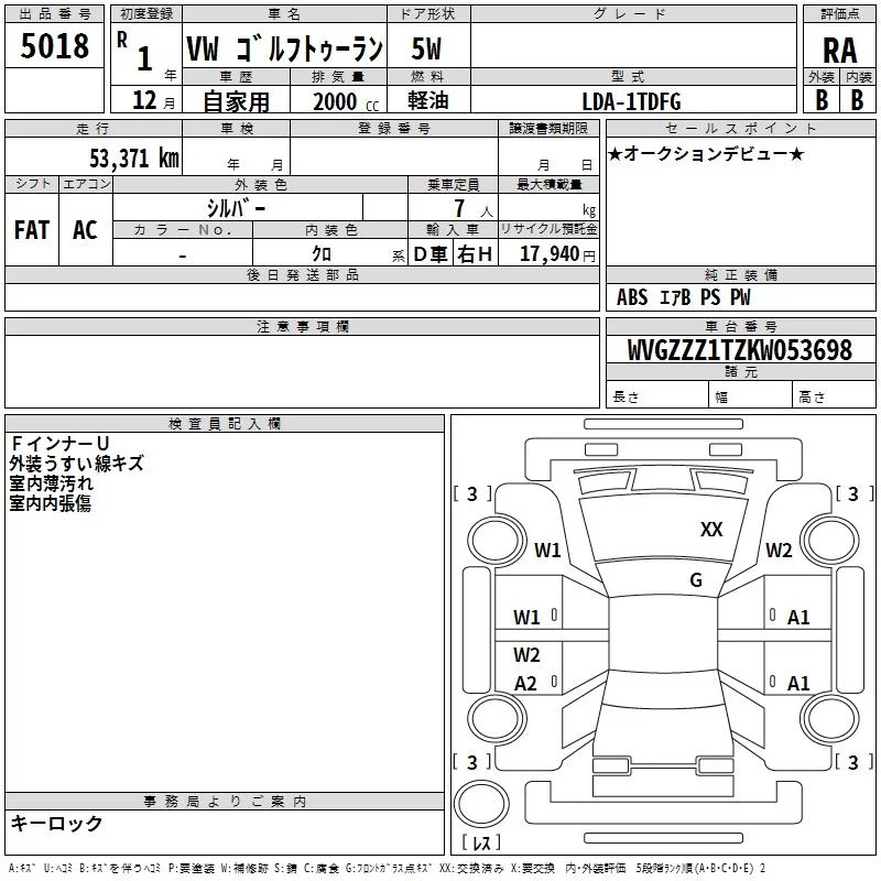 Volkswagen GOLF TOURAN с аукциона Японии TAA Kyushu лот № 5018