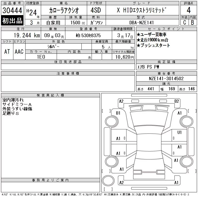 Toyota COROLLA AXIO с аукциона Японии CAA Tokyo лот № 30444