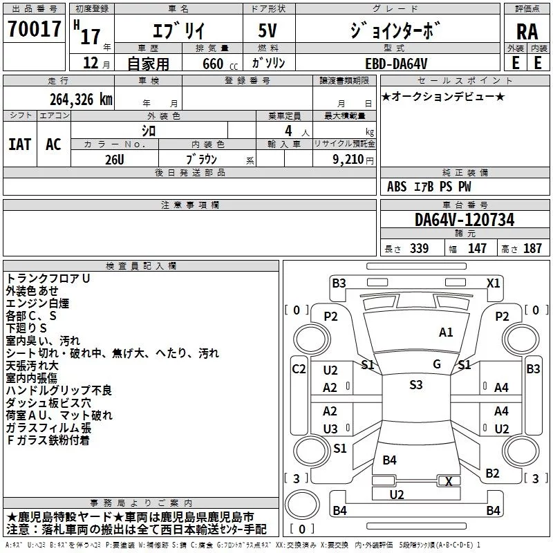 Suzuki EVERY с аукциона Японии TAA Minami Kyushu лот № 70017
