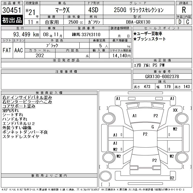 Toyota MARK X с аукциона Японии CAA Tokyo лот № 30451