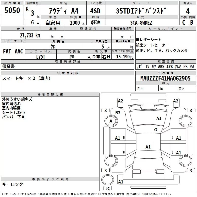 Audi A4 с аукциона Японии TAA Kyushu лот № 5050