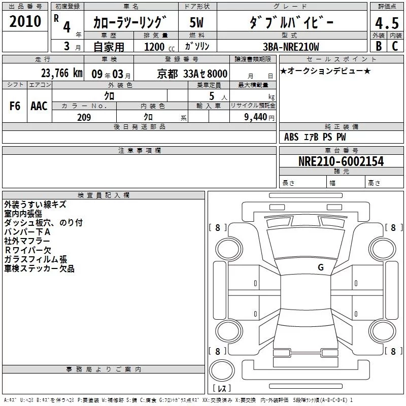 Toyota COROLLA TOURING с аукциона Японии TAA Kinki лот № 2010
