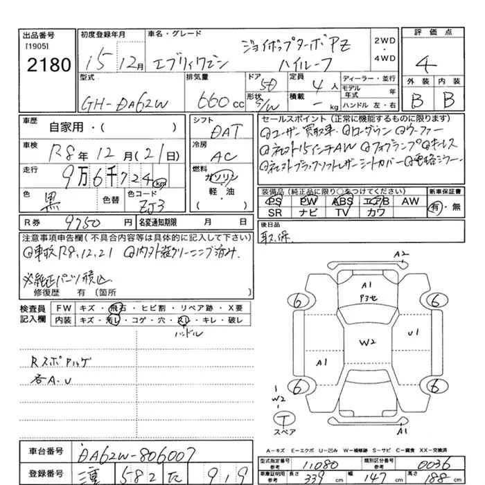 Suzuki EVERY WAGON с аукциона Японии JU Mie лот № 2180