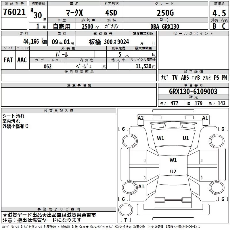 Toyota MARK X с аукциона Японии TAA Kinki лот № 76021