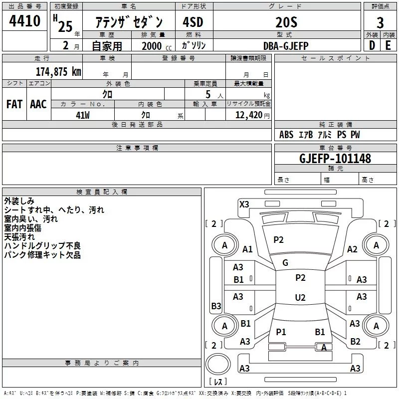 Mazda ATENZA SEDAN с аукциона Японии TAA Kyushu лот № 4410