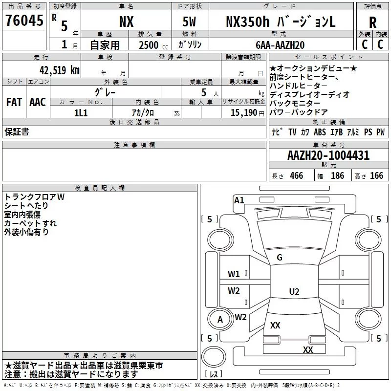 Lexus NX с аукциона Японии TAA Kinki лот № 76045