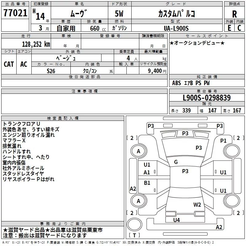 Daihatsu MOVE с аукциона Японии TAA Kinki лот № 77021