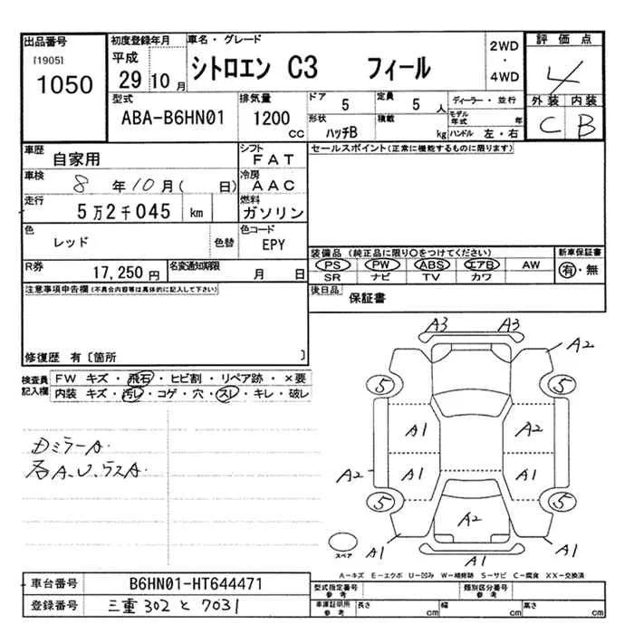 Citroen C3 с аукциона Японии JU Mie лот № 1050