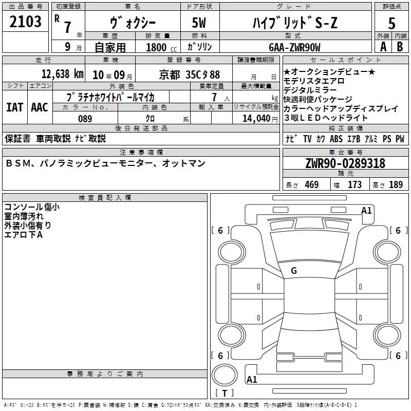 Toyota VOXY с аукциона Японии TAA Kinki лот № 2103
