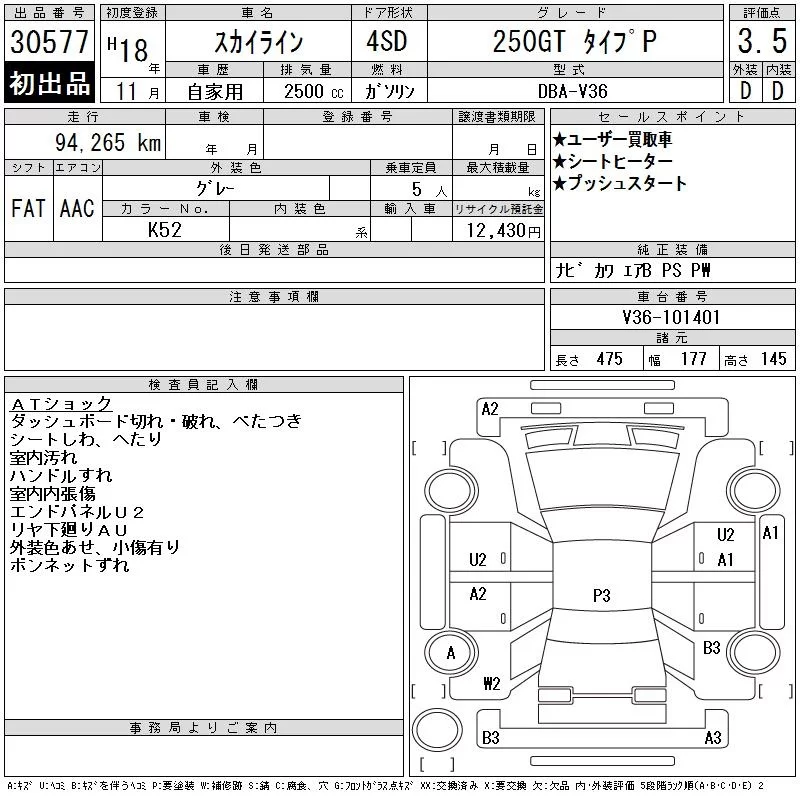 Nissan SKYLINE с аукциона Японии CAA Tokyo лот № 30577